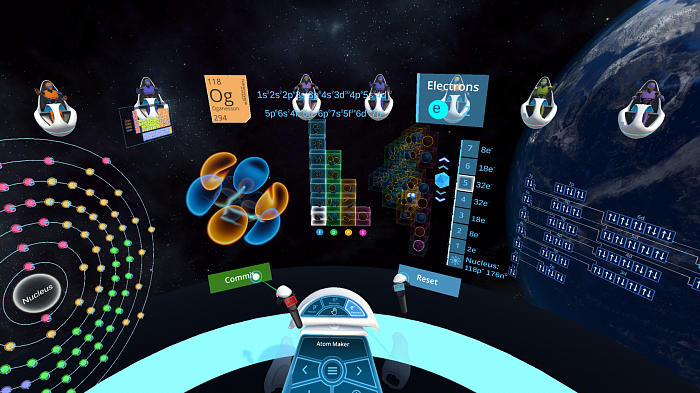 Virtual Classroom is the first of a kind multiuser Virtual Reality experience designed for class trips to VR Venues. Virtual Classroom is dedicated to the topics of atoms, orbitals and periodic table of elements. Students can assemble all known elements, and visualise various shapes of orbitals across the energy levels of an atom.